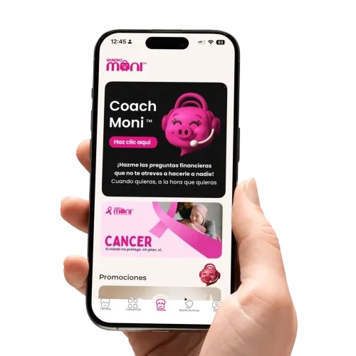 Sí. El app te conecta con seguros de cáncer, vida y discapacidad para proteger tus ingresos. También puedes recibir orientación con COACH MONI™ sobre cómo prepararte.